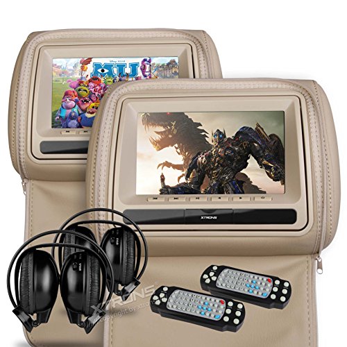 XTRONS Beige 2 x 7" Stylish Digital HD Screen Car Headrest DVD USB SD Players with Zipper Cover IR Headphones : The Best Quality Produt You Can Buy Right Now